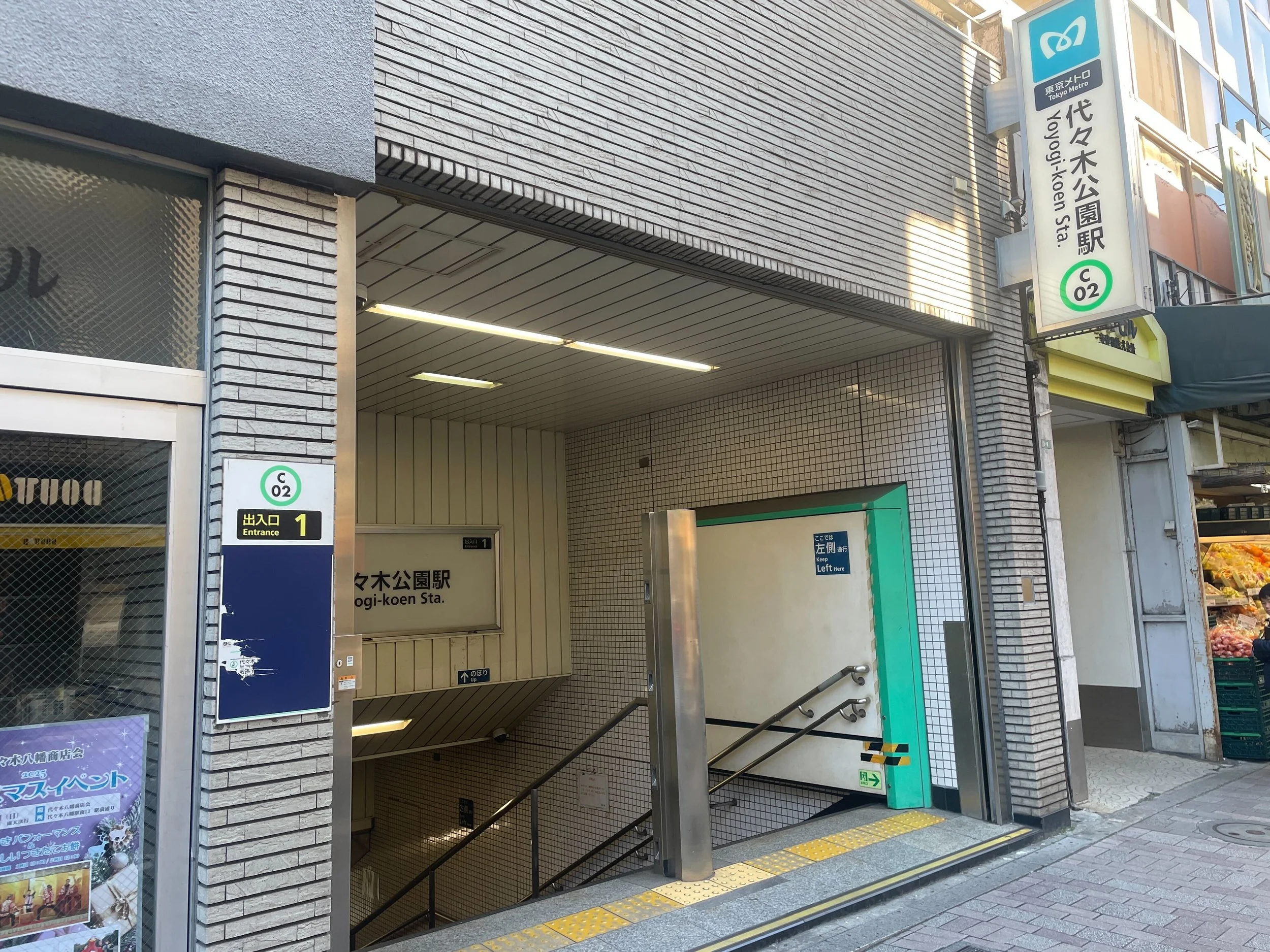 Yoyogi-koen station exit #1. After going up the stairs, exit left.
